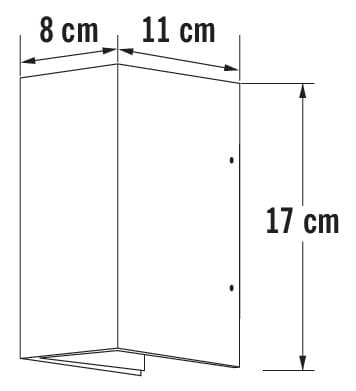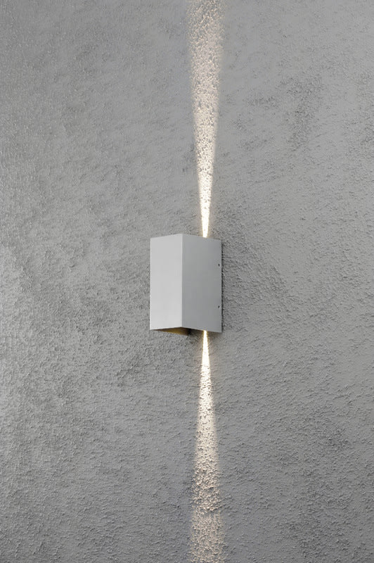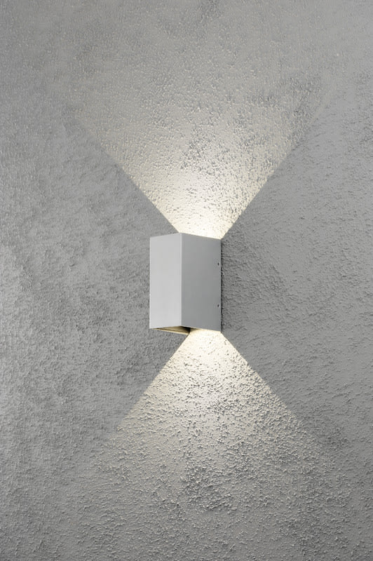Seinävalaisin, alumiininharmaa, korkeus 17 cm, ylös-alasvalo, IP54, LED 2x3W (kiinteä valonlähde).
