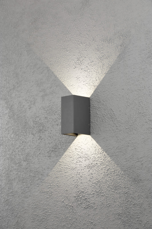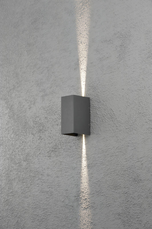 Seinävalaisin, antrasiitinharmaa, korkeus 17 cm, ylös-alasvalo, IP54, LED 2x3W (kiinteä valonlähde).