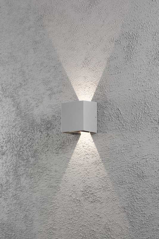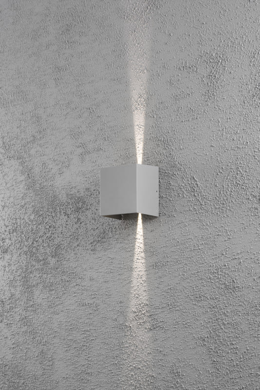 Seinävalaisin, alumiininharmaa, korkeus 13,5 cm, ylös-alasvalo, IP54, LED 2x3W (kiinteä valonlähde).