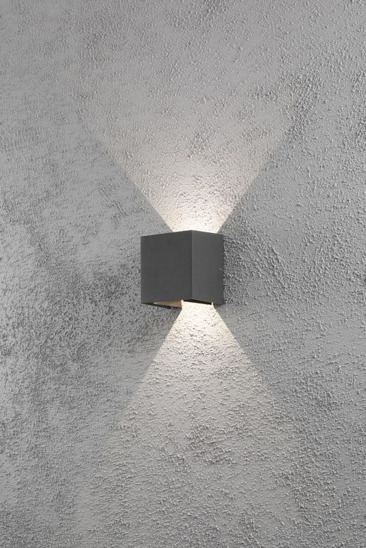 Seinävalaisin, antrasiitinharmaa, korkeus 13,5 cm, ylös-alasvalo, IP54, LED 2x3W (kiinteä valonlähde).