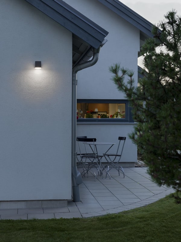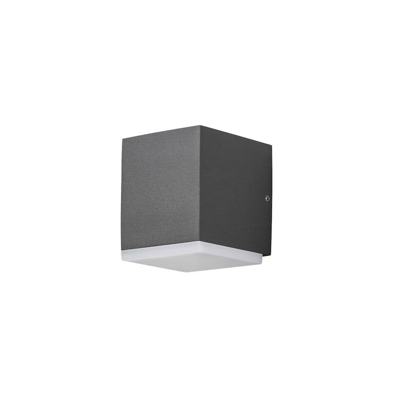 Seinävalaisin, antrasiitinharmaa, opaaliakryyli, korkeus 9,5 cm, IP54, 550lm, kiinteä LED 6W, 3000K, maalattu alumiini.