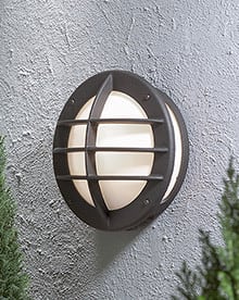 Seinävalaisin pistorasialla, musta, opaaliakryyli, korkeus 31 cm, IP23, E27 (tilattava erikseen, max 60W), polttimon max korkeus 135 mm.