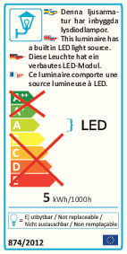 Valonlähteen tyyppi - LED, kiinteä