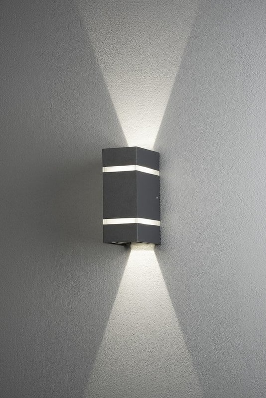 Seinävalaisin, antrasiitinharmaa, korkeus 19,5 cm, ylös-alasvalo, IP54, LED 2x3W (kiinteä valonlähde).