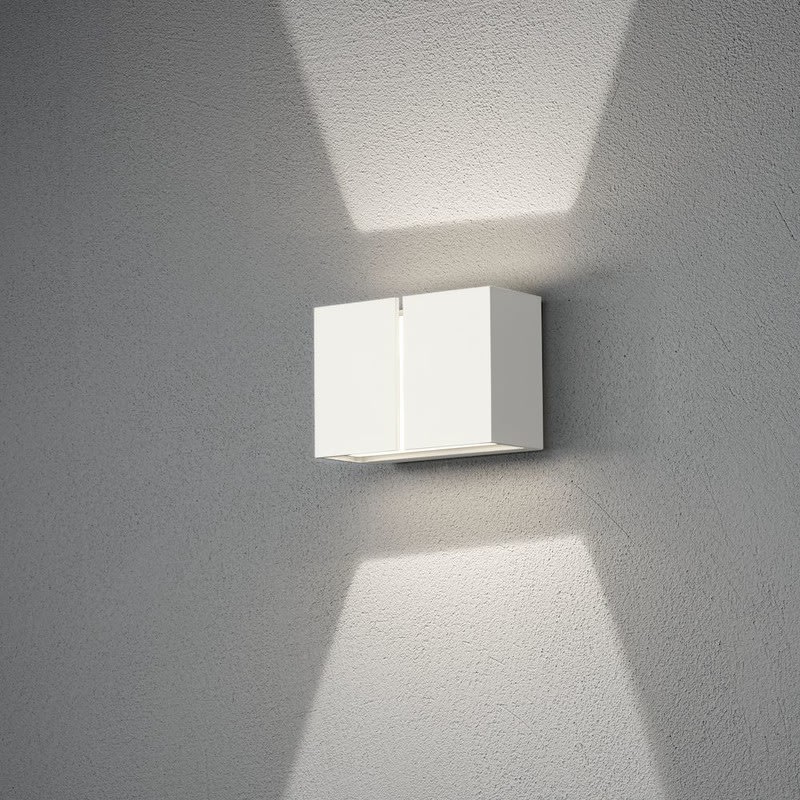 Muotoilultaan moderni valaisin, jonka ylös ja alas näyttävä valonkajo korostaa kauniisti seinää. Lisäksi valaisimen etupuolella on rako, jonka kautta valo antaa viivamaisen kajon.