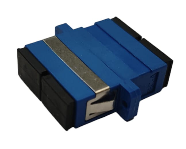 Optinen adapteri, SC/UPC, duplex, yksimuoto, sininen.