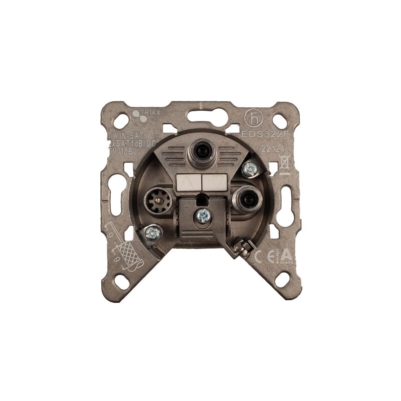 EDS 322 F, päättyvä antennirasia 1dB, 3-liit. RTV/SAT/SAT (5-862IEC-uros/950-2400 F-naaras/950-2400MHz F-naaras), 2:lla tulolla esim.tallentavien satelliittivastaanottimien kaksoissyöttöön. SAT linjoissaDC-läpisyöttö.