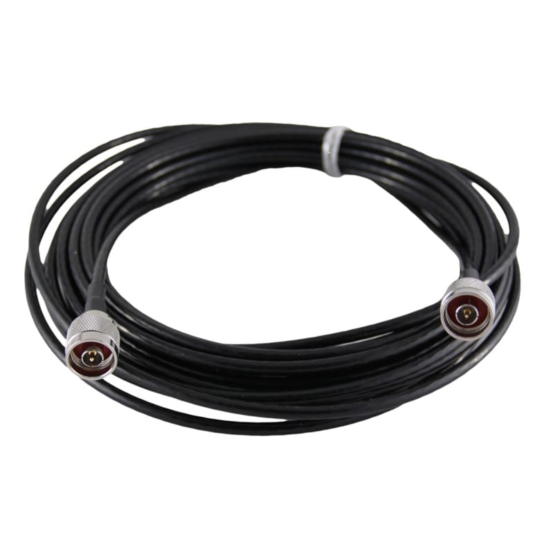 10 metrin, 50 Ohmin koaksiaali valmiskaapeli N-urosliittimillä. MustaPE-ulkovaippa halk. 5,4mm, sisäjohdin monisäikeinen 19×0,28mm. Vaimennus2,8dB/900MHz/10metriä. N-liittimen halkaisija 20mm.