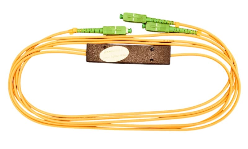 Yksimuoto (SM) optinen jaotin kahteen 60/40% jakosuhteella, 1mpituisilla Ø 2mm paksuisilla G657A kytkentäkuiduilla joissa valmiinaSC/APC liittimet. Aallonpituudet 1310/1550 nm, vaimennus 4,4/2,4 dB.