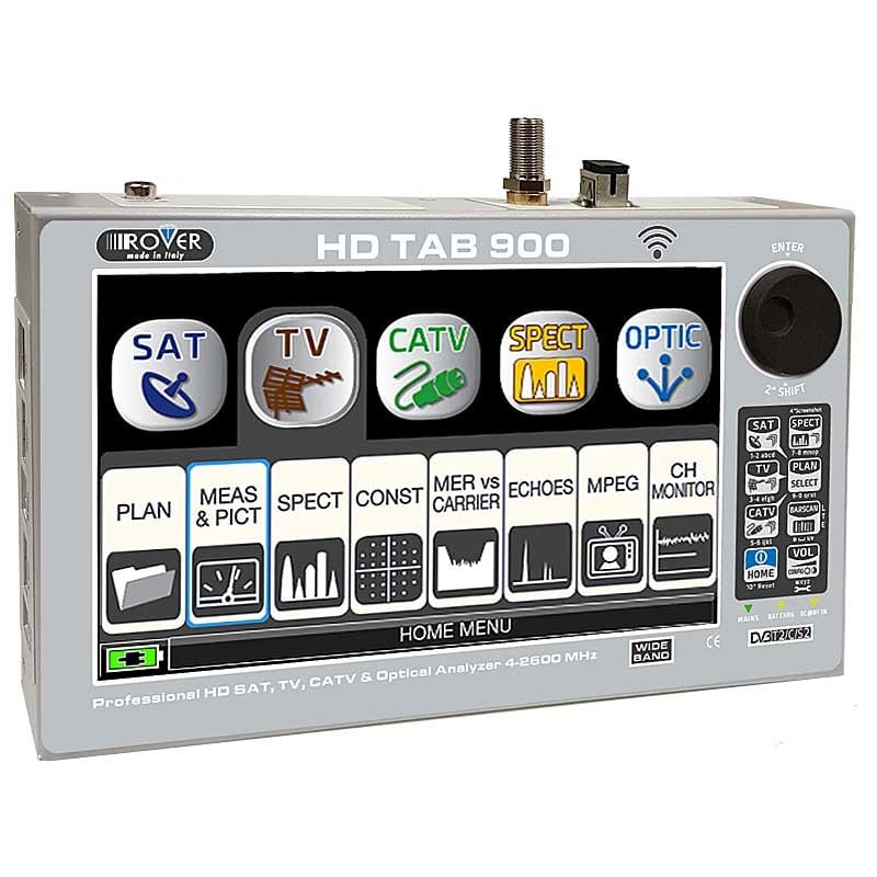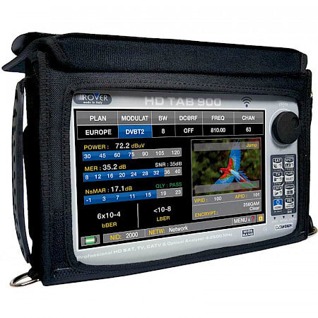 Antennisignaalin mittalaite 9\" kosketusnäytöllä, DVB-T/T2, DVB-C, DVB-S/S2, FM, Analog. TV, Video IN. Laajennettu taajuusalue 4-1250 MHz, 930-2610 MHz, GSM 860-1000 MHz. LTE-signaalin automaattinen mittaus ja analysointi. MPEG 2/4 dekooderi kuvailmaisuun, taso, BER, MER, konstellaatiokuva, spektri, DiSEq TM 1.2, datalogger. Optinen Input. LAN, Wi-Fi, HDMI OUT. Tehoalue 28-130 dBuV. Li-Po akku 4 Ah. Tukeva laukku.