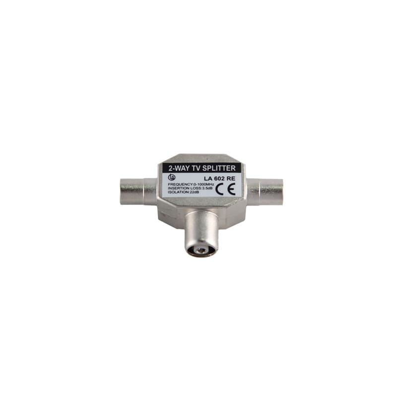 LA 602 RE, jako kahteen TV 3.5dB, 0-1000MHz, rasian TV-liittimeenpainettava, IECN IN/2×IECK OUT