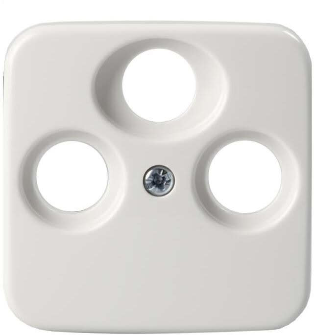 Jussi-sarjan antennirasian 3-reikäinen keskiölevy. Mitat 54mm × 54mm, TV/Radio/Satelliitti.