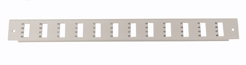 12 kpl aukkoja LC quad adaptereita varten, numerointi 1-48. Materiaalion harmaaksi maalattu teräs. Sopii 19 kuitupäätepaneelirunkoon Snro.7273076