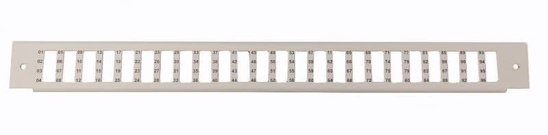24 kpl aukkoja LC quad adaptereita varten, numerointi 1-96. Materiaalion harmaaksi maalattu teräs. Sopii 19 kuitupäätepaneelirunkoon Snro.7273076