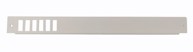 6 kpl aukkoja LC quad tai SC duplex adaptereita varten, ei numerointia.Materiaali on harmaaksi maalattu teräs. Sopii 19 kuitupäätepaneelirunkoon Snro. 7273076