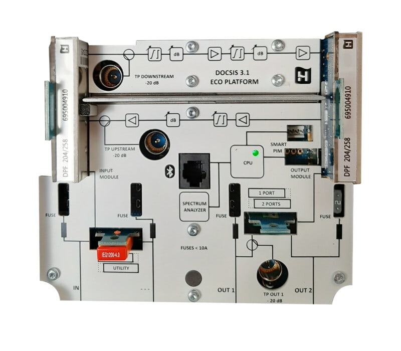 2 x 43dB, Kaukosyötetty 25-65 VAC, 85/258-1218MHz, 50dB CINR@ 2 x105dBuV (1x109dBuV)
