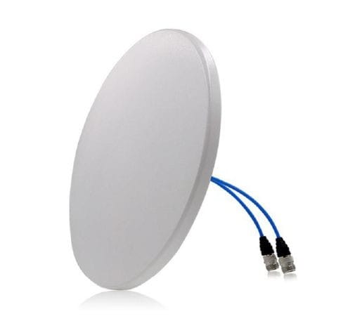 Ympärisäteilevä kattoon asennettava Low PIM MiMo antenni. Taajuusalue 698-3800 MHz, vahvistus 698-960MHz: 2 dBi, 1710-2700 MHz: 4 dBi ja 3300-3800MHz: 4 dBi. 2 kpl kaapelit, jossa 4.3-10-naarasliittimet. Impedanssi 50 ohmia, tehonkesto 50W, Low PIM antenni -153dBc@2*43dBm. Sisäkäyttöön. DAS sisäpeittoverkko