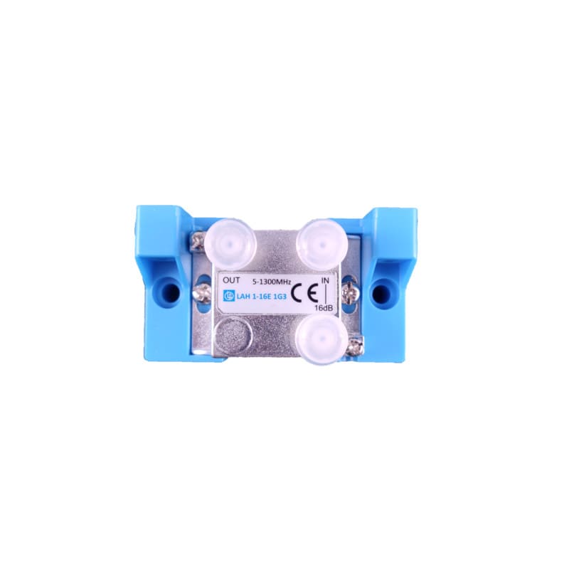 LAH 1-16E 1G3 läpimenevä haaroitin yhteen jossa haaravaimennus on 16dB ja läpimenovaimennus 0.4-1.4dB kuuluu Laatuantenni Oy:n 1G3 haaroitin sarjaan joka kattaa taajuusalueen 5-1300 MHz (Docsis 3.1), sen heijastusvaimennus laatuluokka on 1 (Grade 1) sekä SA luokka on A. Haaroitin on valmistettu pieneen sinkkivalurunkoon jossa kaikki F-liittimet ovat päällä saman suuntaisesti. Haaroitin sisältää jo valmiiksi kiinnitetyt eristinkappaleet, nämä mahdollistavat myös asennuksen niin että liittimet lähtevät vaaka- tai pystysuuntaan. Maadoitusruuvin alle sopii 6 mm2 kaapeli.