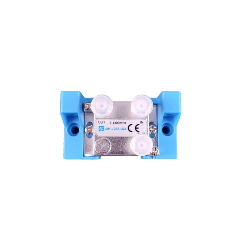 LAH 1-24E 1G3 läpimenevä haaroitin yhteen jossa haaravaimennus on 24dB ja läpimenovaimennus 0.4-1.2dB kuuluu Laatuantenni Oy:n 1G3 haaroitin sarjaan joka kattaa taajuusalueen 5-1300 MHz (Docsis 3.1), sen heijastusvaimennus laatuluokka on 1 (Grade 1) sekä SA luokka on A. Haaroitin on valmistettu pieneen sinkkivalurunkoon jossa kaikki F-liittimet ovat päällä saman suuntaisesti. Haaroitin sisältää jo valmiiksi kiinnitetyt eristinkappaleet, nämä mahdollistavat myös asennuksen niin että liittimet lähtevät vaaka- tai pystysuuntaan. Maadoitusruuvin alle sopii 6 mm2 kaapeli.
