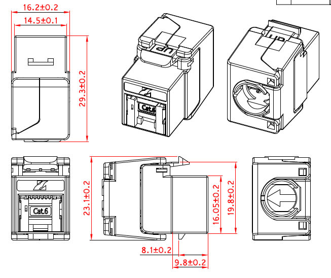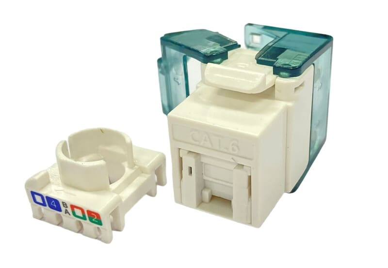 Liitin on varustettu myös RJ45 liittimen pölysuojalla ja liittimen takaosa on läpinäkyvää muovia. Kun liittimen läpinäkyvä suojaus suljetaan, estää se katkaistujen kuparijohtimien osumisen muihin liittimiin tai paneelin metalliosiin.