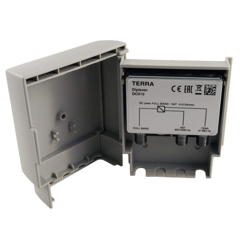 SAT/Terrestrial mastosuodatin, (950-2400/47-862MHz), jännitteen läpisyöttö OUT/SAT 0.5 A max.