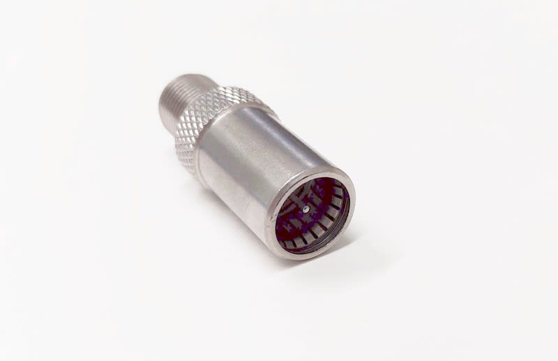 Mittauskäyttöön soveltuva F-pika-adapteri jossa kierrettävä F-naarasliitin ja toisessa päässä laadukas painettava F-urosliitin mikä nopeuttaa mittaamista.