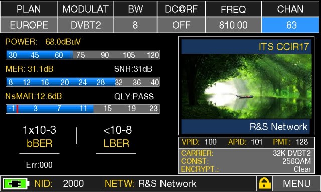 5" 16:9 korkearesoluutio kosketusnäyttö, DVB-T/T2, DVB-C, DVB-S/S2, FM.Taajuusalue TV/CATV/Radio 30-1000MHz, SAT 700-2700MHz. MPEG 2/4 SD ja HDdekooderi kuvailmaisuun, taso, BER, MER, konstellaatiokuva, spektri,DiSEqC, datalogger. Tehoalue 35-115 dBuV.