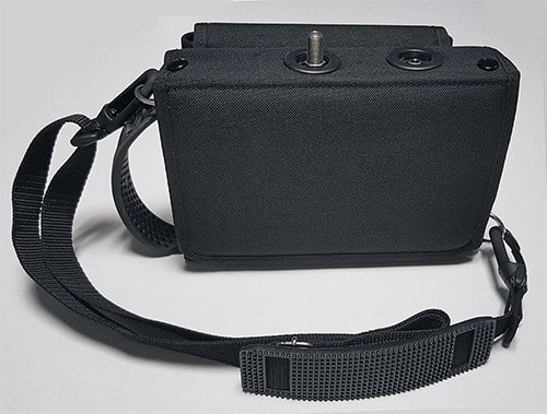 Tukeva kantolaukku ROVER:n TAB 5 ULTRA mittarille olkahihnalla ja tarviketaskulla.