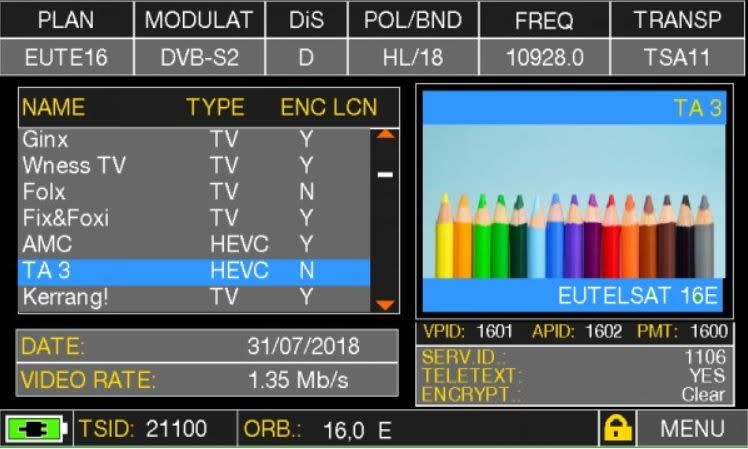 H265 HEVC optio ROVER:n TAB 5 ULTRA mittariin. H265 videon analysointiin. Tehtaalla mittariin asennettava.