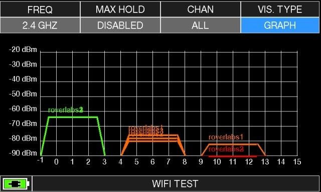 Wi-Fi analysaattori 2.4-5.0 GHz taajuuksille Wi-Fi verkkojen mittaamiseen.