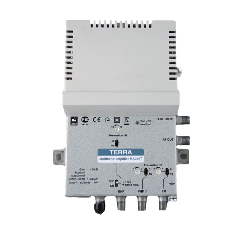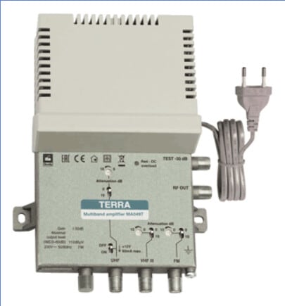 Terra MA 049T pientalovahvistimessa on sisäänrakennettu LTE700 suodin eli soveltuu käytettäväksi TV verkoissa, joissa käytetään UHF kanavia E21-E48.