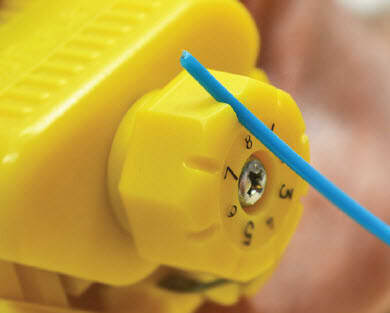 Kätevät esiasetetut halkaisija-asetukset nopeuttavat kuituputken kuorintaa 1 mm - 3 mm kuituputkissa. Tällä teet nopeasti oikeanmittaisen kuorinnan kuituputkelle.