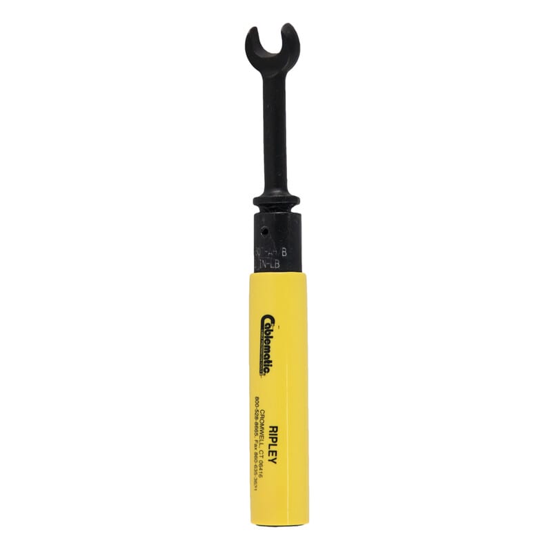 Momenttiavain jolla kiristät F-liittimen tarkasti ilmoitettuun momenttiin. 3.4Nm, 11.1mm (RG6-sarjan F-liittimille), kulmamalli. Naksahdusääni kertoo kun kiristysmomentti saavutettu.