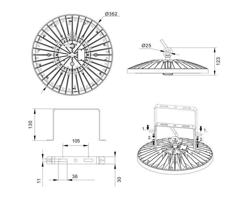 LEDIMO - Syväsäteilijä - IP65 150W 362mm 850 80deg