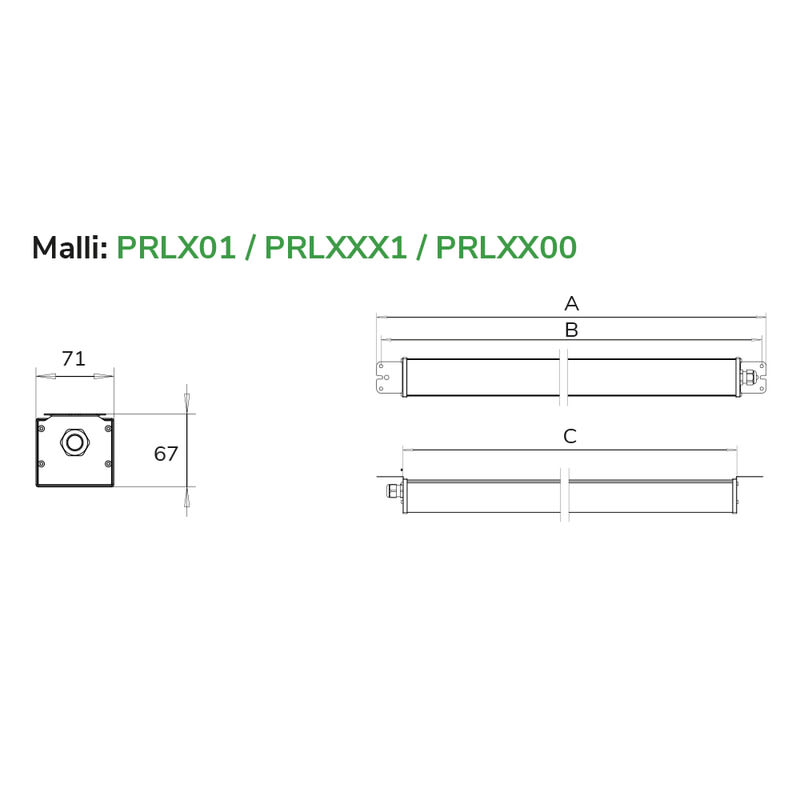 • Materiaali: runko alumiinia, päädyt RST, kupu PC
