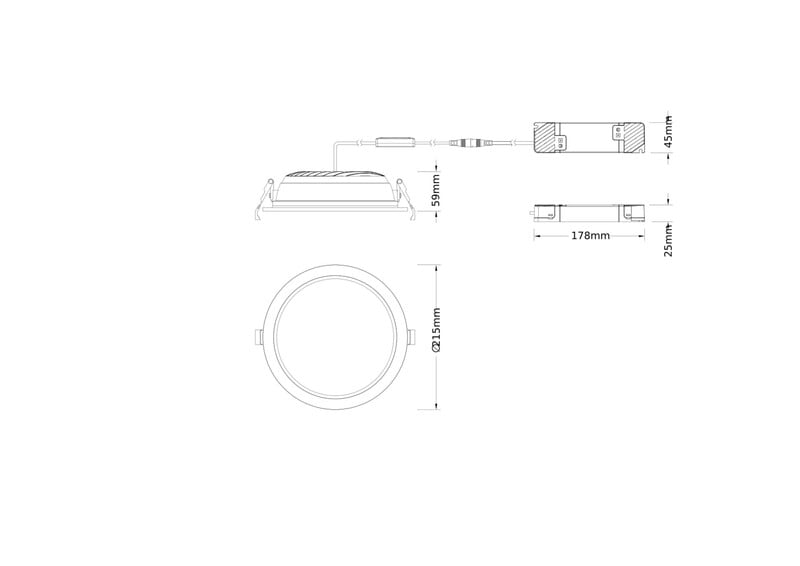 - Mitat (Halkaisija/korkeus): 215 x 59 mm