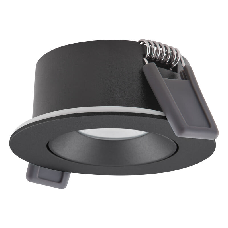 LEDVANCE SPOT AIR ADJUST 4W/3000K DIM IP23 LED-alasvalo mustalla kehyksellä. Valovirta 320 lm (80 lm/W), avauskulma 36° ja värintoistoindeksi yli 90. Halkaisija 81 mm (upotushalkaisija 68 mm) ja korkeus 34 mm. Keskimääräinen käyttöikä 50 000 h. LEDVANCE SPOT AIR ADJUST -tuotesarja sisältää erittäin kattavan valikoiman erilaisia vaihekulmahimmennettävä uppoasennettavia Spot-alasvaloja valkoisella, mustalla tai hopeisella kehyksellä. Valaisimien upotusreijän halkaisija on 68 mm ja ne käyvät 3 – 25 mm:n alakattoihin. Spot Air -valaisimet voidaan sijoittaa suoraan eristevillaan. Spot Air Adjust -alasvaloja voidaan suunnaata 25 astetta.