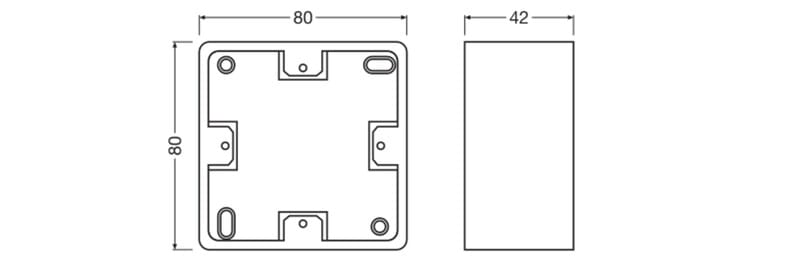 LEDVANCE MCU SURFACE MOUNT FRAME pinta-asennuskehys LEDVANCE MCU valonsäätimille. Mitat: 80 x 80 x 42 mm. Pakkaus sisältää tarvittavat kiinnitystarvikkeet.