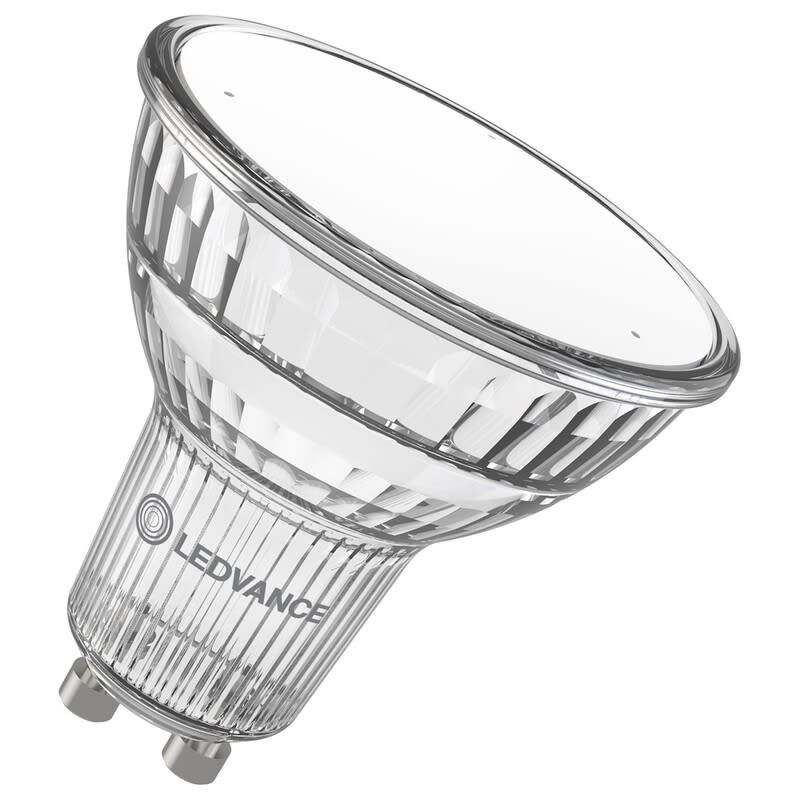 LEDVANCE Performance PAR16 3,1W 2700K GU10 ei-himmennettävä LED-kohdelamppu. Valovirta 350 lm (vastaa 32 W:n halogeenilamppua), avauskulma 120D (100 cd) ja värintoistoindeksi yli 80. Pituus 54 mm ja halkaisija 50 mm. Keskimääräinen käyttöikä 15 000 h. LED SPOT PAR16 PERFORMANCE -tuoteperheestä löydät pitkäikäisen ja laadukkaan LED-kohdelampun GU10-kantaisten kohdelampun tilalle. Lamput ovat valmistettu lasista ja niiden fyysiset mitat vastaavat perinteisiä lamppuja.