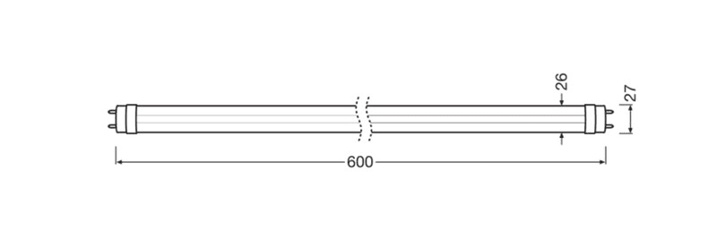 LEDVANCE LED TUBE T8 EXTERNAL 7,3W/3000K G13 LED-valoputki 18 W:n T8-loistelampun tilalle. Valovirta 1000 lm. Pituus 603 mm ja halkaisija 27 mm. Keskimääräinen käyttöikä 75 000 h. Käyttö vain LEDVANCE DRIVER DALI EXTERNAL -liitäntälaitteen kanssa. LEDVANCE LED TUBE T8 EXTERNAL-tuoteperheen tuotteiden avulla voidaan tehdä DALI-valonohjaukseen soveltuva valaistus vaihdettavilla valonlähteillä. Erillinen DALI-himmennettävä virtalähde mahdollistaa myös LED-valoputkien käyttämisen keskusakustollisessa turvavalaistusjärjestelmässä.