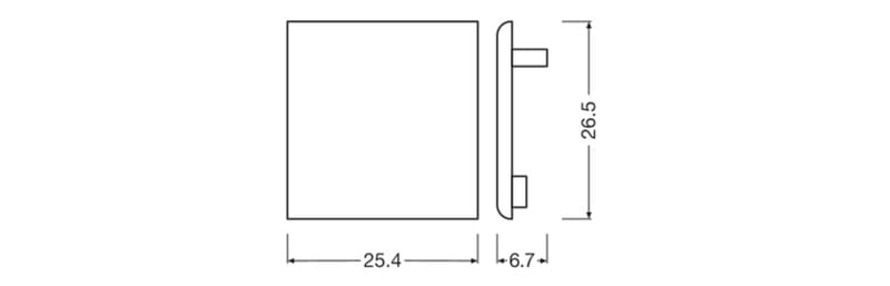 LEDVANCE PW04/EC päätypala PW04 -profiilille. Päätypalan leveys 25,5 mm, korkeus 26,5 mm ja syvyys 6,7 mm. Sisältää kaksi päätypalaa.