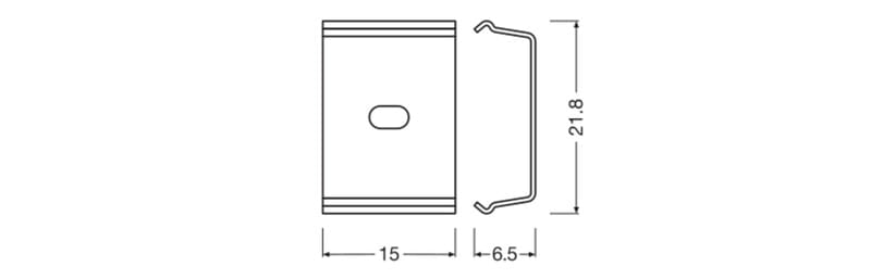 LEDVANCE PW04/MB kiinnike PW04 -profiilille. Kiinnikkeen pituus 15 mm, leveys 21,8 mm ja korkeus 6,5 mm. Sisältää kaksi kiinnikkettä.