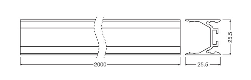 LEDVANCE PW04/U/25,5X25,5/13/2 leveä U:n mallinen alumiiniprofiili, jonka pituus 2000 mm, leveys 25,5 mm ja korkeus 25,5 mm. Profiili soveltuu 13 mm leveille LED-nauhoille.