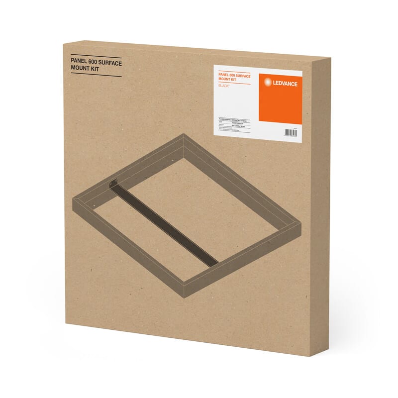LEDVANCE Surface Mount Kit 600 esikasattu musta pinta-asennuskehys LEDVANCE PANEL 600 LED-moduulivalaisimille. Mitat: 600,5 x 600,5 x 75 mm. Valmistettu alumiinista. Sopii seuraaville LEDVANCE valaisimille: