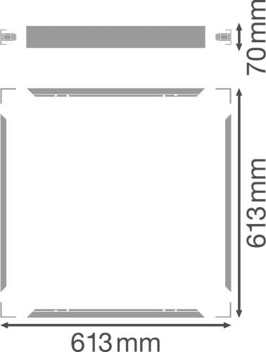 LEDVANCE Surface Mount Kit 600 Value kasattava pinta-asennuskehys LEDVANCE Panel 600 -moduulivalaisimille. Mitat kasattuna: 613 x 613 x 70 mm. Sopii seuraaville LEDVANCE valaisimille: