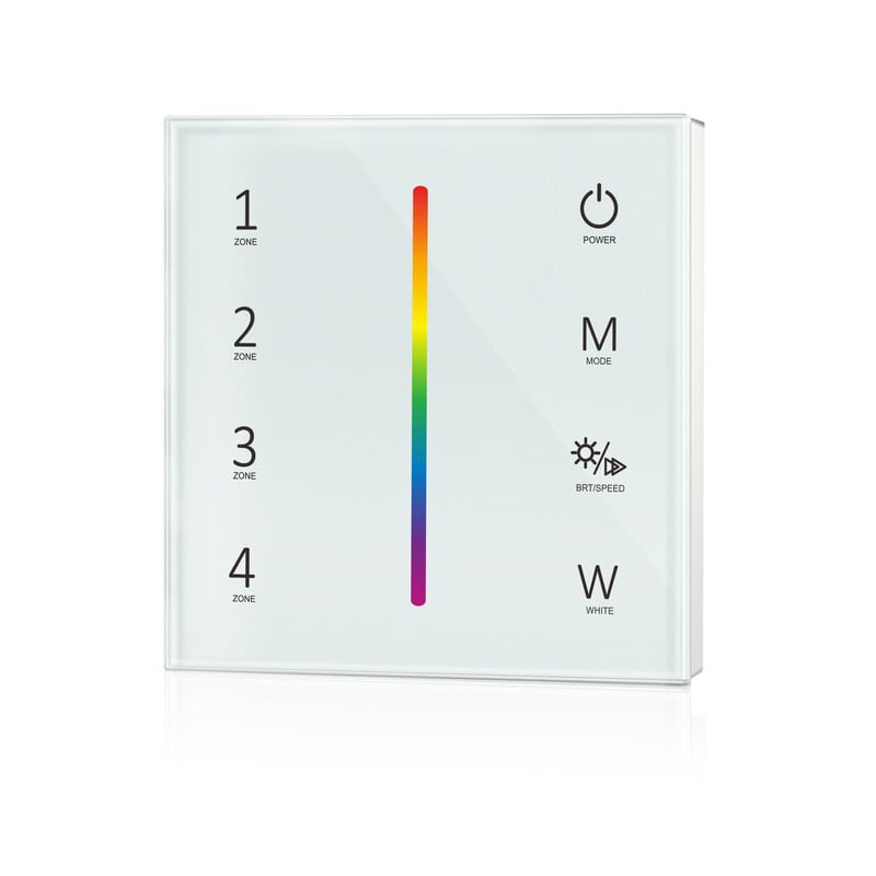 LEDVANCE LC RF TOUCH PANEL RGBW -ohjauspaneeli LC RF CONTROL -ohjainyksikölle ja LEDVANCE PERFORMANCE RGBW ja VALUE RGB LED-nauhoille. LEDVANCE RC RF -ohjausjärjestelmällä ohjaat helposti Tunable White- (TW), RGB- ja RGBW-LED-nauhoja kaukosäätimellä tai kojerasiaan asennettavalla lasipintaisella kosketuspaneelilla. Yhteen asennukseen tarvitset vähintään yhden sopivan tehoisen ON/OFF -vakiojännitelähteen LED-nauhalle (12V tai 24V riippuen ohjattavasta LED-nauhasta), LC RF CONTROL -ohjainyksikön, ohjattavan nauhan mukaan RGBW- tai TW -kaukosäätimen tai RGBW- tai TW-ohjauspaneelin.