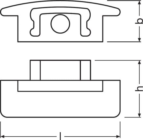 LEDVANCE PF03/EC/H päätypala läpivientireiällä PF03 -tyyppiselle profiilille. Päätypalan pituus 7,8 mm, leveys 25 mm ja korkeus 8,3 mm. Sisältää kaksi päätypalaa.