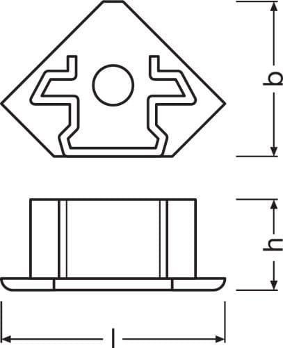 LEDVANCE PM03/EC/H päätypala läpivientireiällä PM03 -tyyppiselle profiilille. Päätypalan pituus 11,5 mm, leveys 26,6 mm ja korkeus 17,4 mm. Sisältää kaksi päätypalaa.