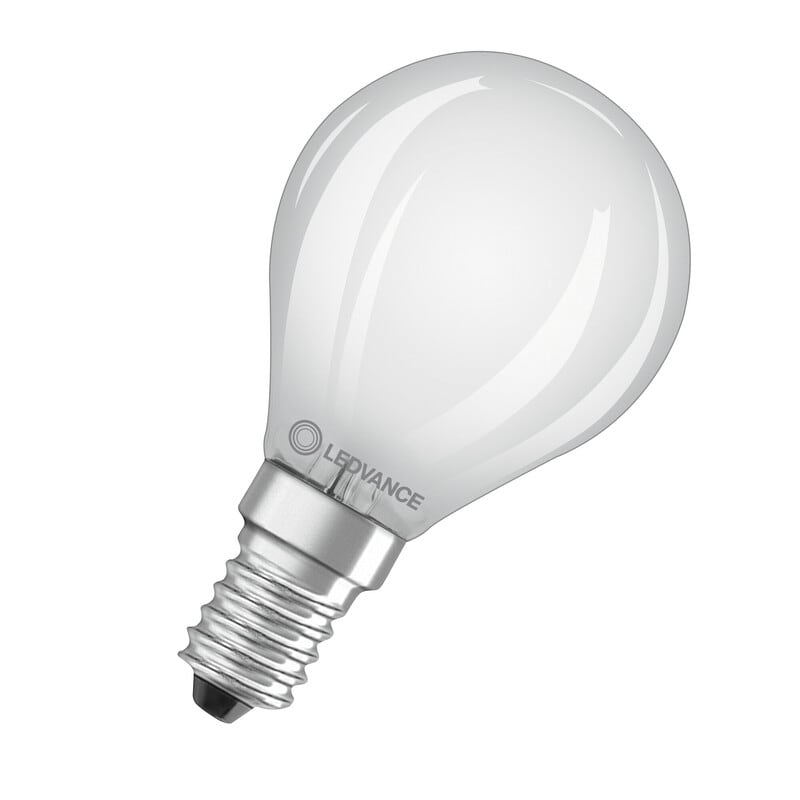 LEDVANCE Performance Classic P 2,5W 2700K E14 ei-himmennettävä matta LED-pienkupulamppu (D45). Valovirta 250 lm (vastaa 25 W), avauskulma 300D ja värintoistoindeksi yli 80. Pituus 77 mm, halkaisija 45 mm. Keskimääräinen käyttöikä 15 000 h. LEDVANCE LED CLASSIC PERFORMANCE -tuoteperheestä löytyy erittäin kattava valikoima kierrekantaisia LED-filamenttilamppuja. Lamput ovat valmistettu lasista ja niiden fyysiset mitat vastaavat perinteisiä lamppuja.