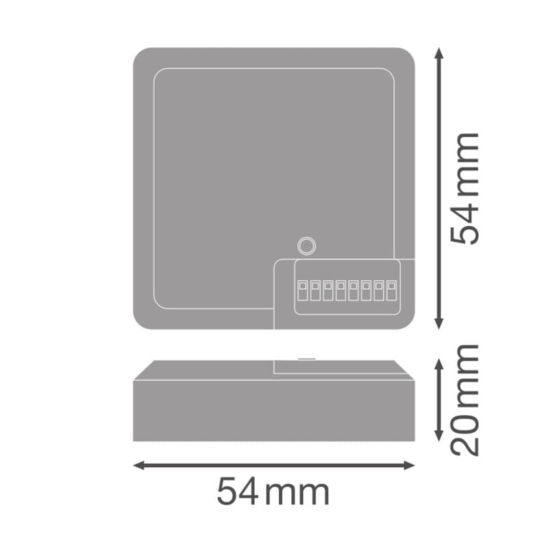 LEDVANCE BULKHEAD COMBO ROUND SENSOR liike- ja hämärätunnistin LEDVANCE Bulkhead Combo-pinta-asennusvalaisimeen. Mitat: 54 x 54 x 20 mm.
